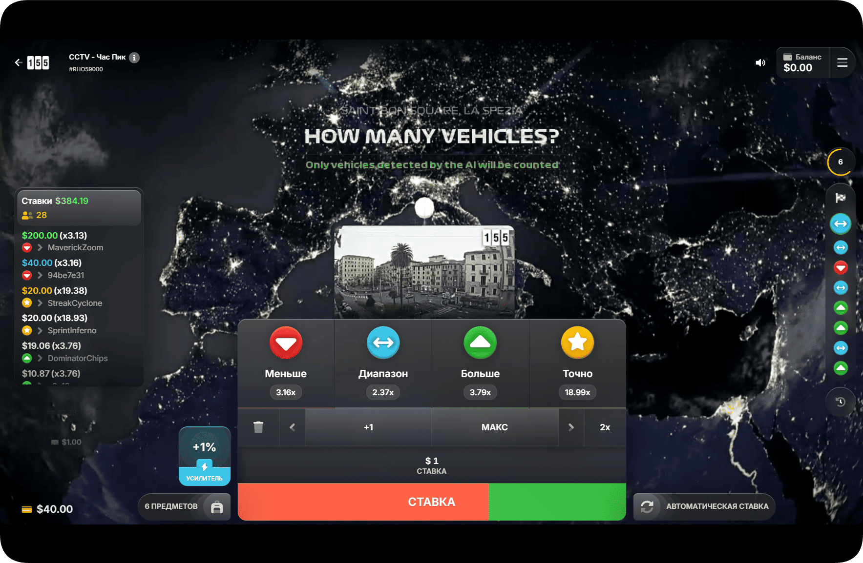 Механика CCTV Rush Hour построена на простом принципе: игрок делает ставку и наблюдает за развитием игрового события.